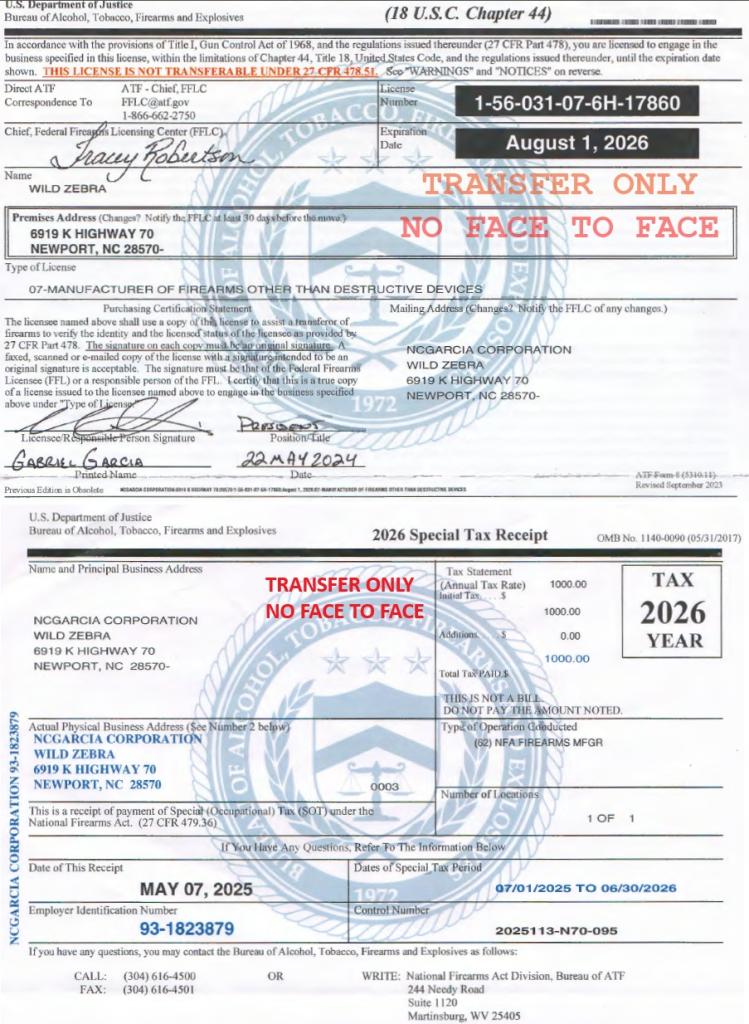 3. Please be aware that once your tracking indicates that your package has arrived, it will join a queue alongside other packages. We will promptly open, log, and process your firearm(s) or NFA items. However, depending on daily volume, this process may take 1-2 hours. Thank you for your understanding!